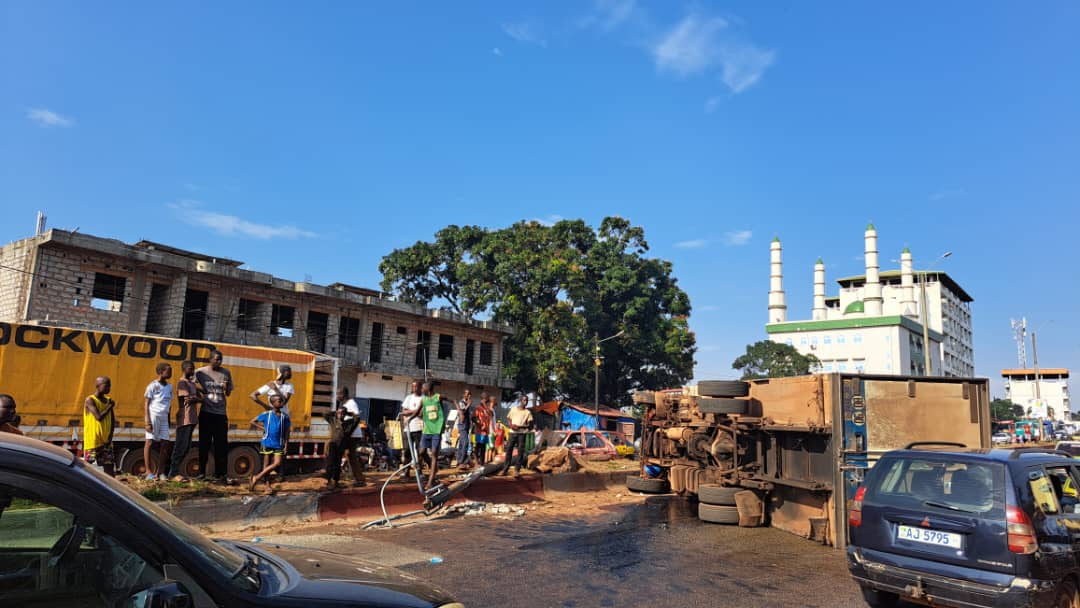 Accident sur l’axe Hamdallaye-Bambéto : un camion transportant des poulets se renverse