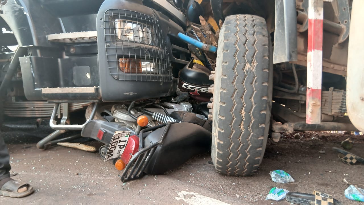 La collision a concerné quatre camions, une voiture légère et une moto, dans des circonstances qui restent encore indéterminées. L’impact, particulièrement brutal, a provoqué d’importants dommages, notamment l’écrasement de la voiture et de la moto, coincées sous des camions-citernes, selon des témoins et des images prises sur place.