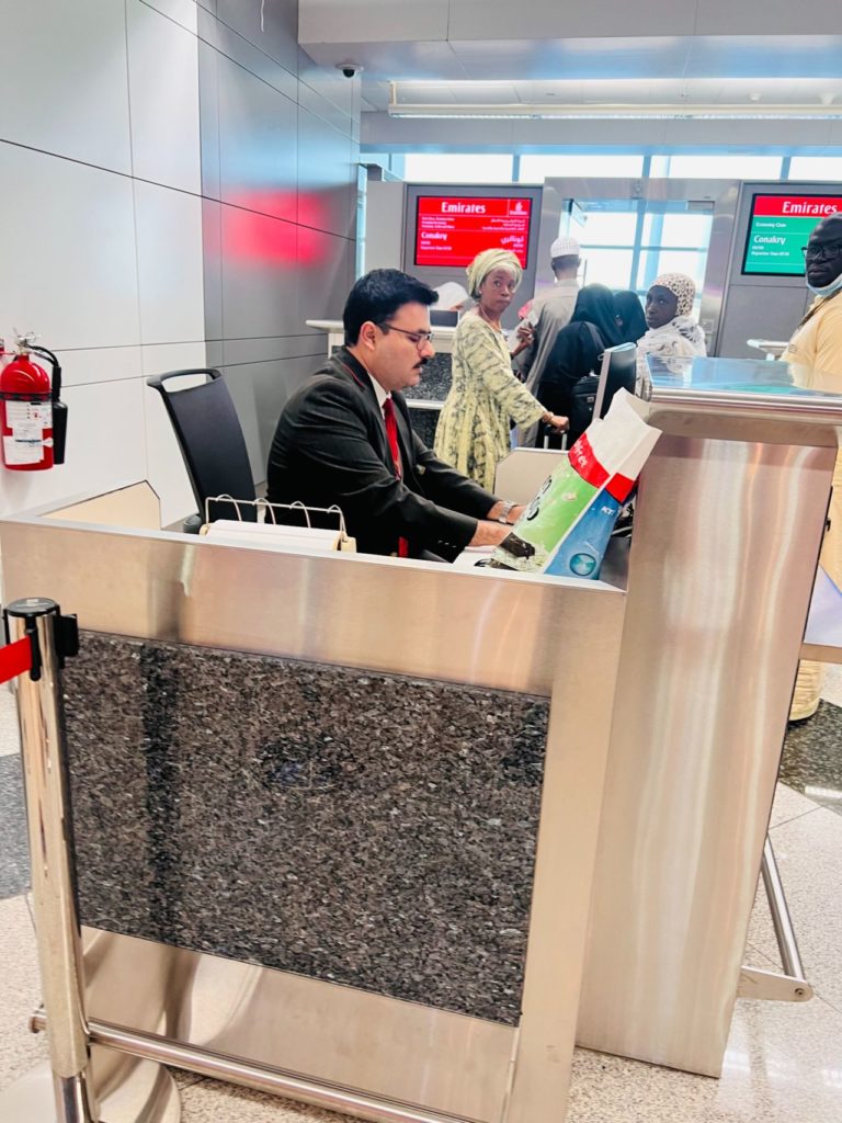 « J’ai été agressé par un agent Emirates. Il a brutalement retiré mon booding pass (carte d’embarquement) dans mon passeport et la déchire aussi sans rien me dire et il m’a demandé de sortir du rang. Quelques minutes plus tard, il réimprime un autre booding pass et revient me donner. Que j’ai aussitôt refusé en lui demandant pourquoi il a fait ça ? Il me dit que je suis sortie du rang et que je suis revenu encore. Je lui demande si c’est à cause de ça il a agi comme ça, il est reparti en parlant dans sa langue. Je vais mettre sa photo ici vous aller le voir. Je me suis senti offensé publiquement. Il est revenu vers moi me dire que s’il veut, je ne vais pas voyager dans ce vol. Je lui demande pourquoi, il dit parce que c’est lui le chef ici. J’ai voulu récupérer ce qu’il a déchiré, il a refusé catégoriquement. Emirates c’est ma compagnie préférée mais je n’ai pas aimé le comportement de cet agent à mon égard. J’espère que la compagnie pensera à sensibiliser ses agents dans la gestion de ces clients. Merci ! », a laissé entendre ce citoyen Guinéen.
