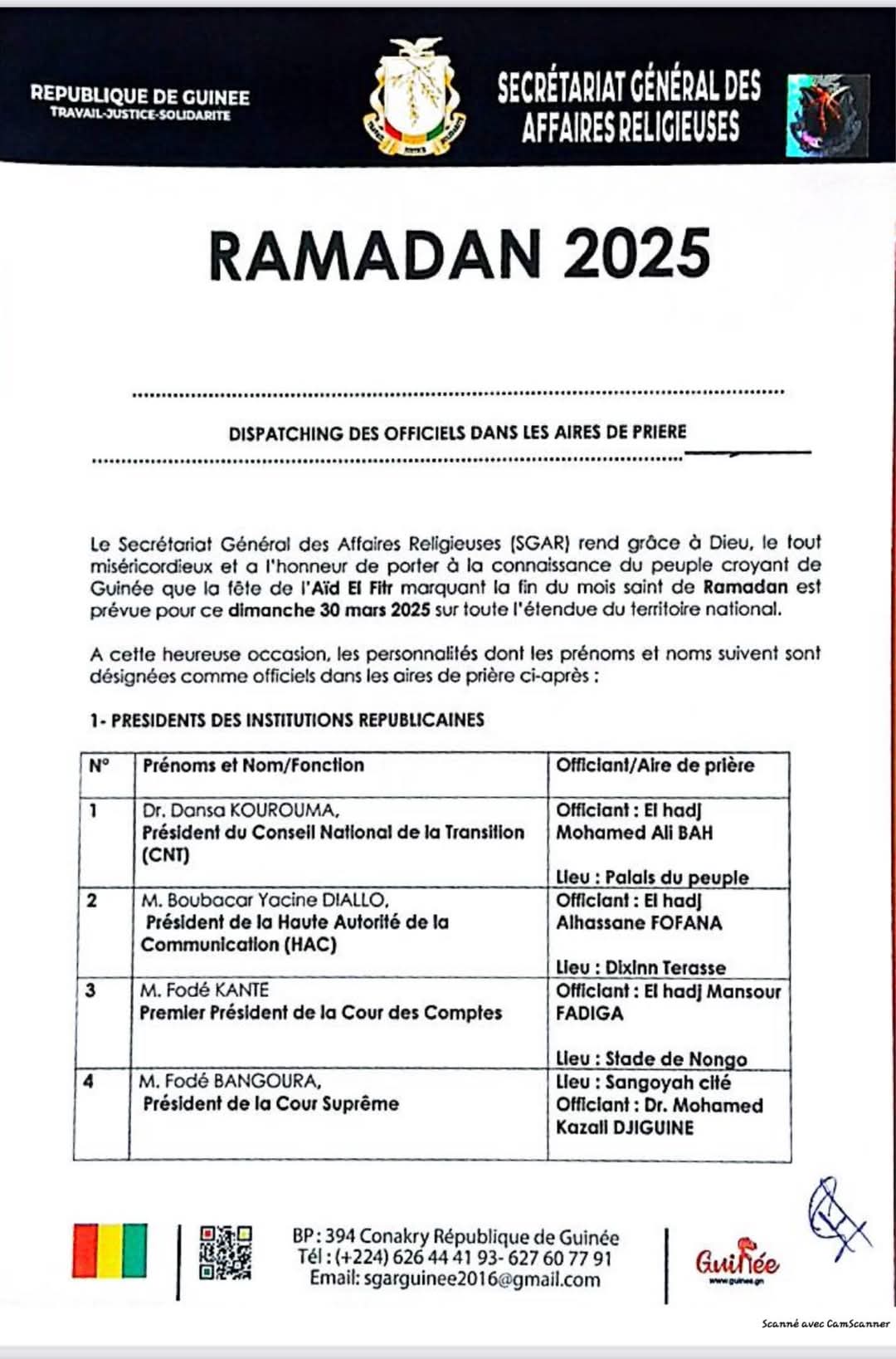 Aïd El-Fitr 2025 : Les hautes autorités guinéennes mobilisées pour la prière