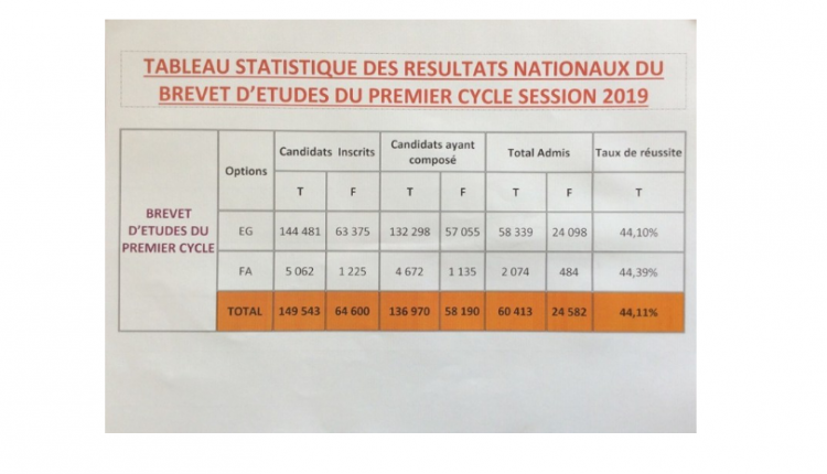 BEPC 2019 : 44% de taux d’admission