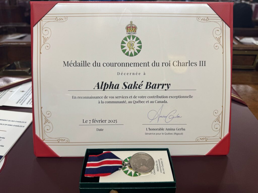 C’est avec une immense fierté que nous vous annonçons que notre doyen, Alpha Saké Barry, président d’honneur de la FAAC, a été honoré par la Médaille du couronnement du roi Charles III. Cette distinction lui a été remise vendredi dernier au Sénat canadien par l’honorable Amina Gerba, sénatrice indépendante représentant le Québec (Rigaud).
