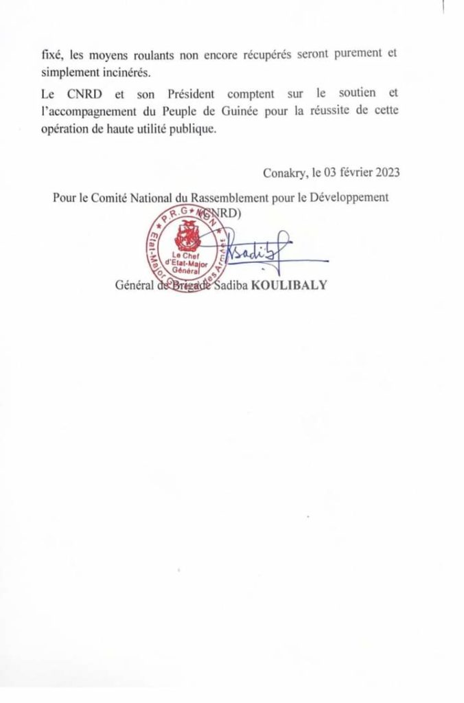 Le CNRD porte à la connaissance de l’opinion publique que dans le cadre de l’amélioration du cadre de vie de la population, qu’il entamera les prochains jours une vaste campagne de déguerpissement des encombrants physiques dans la capitale.