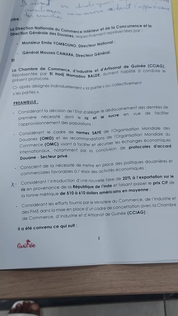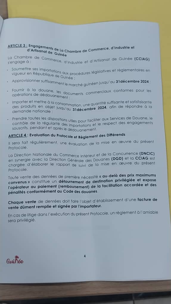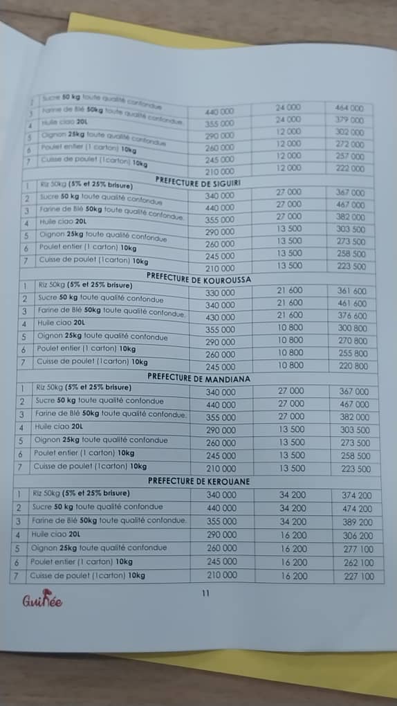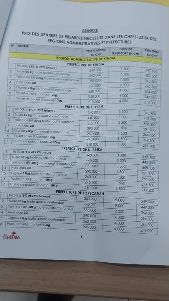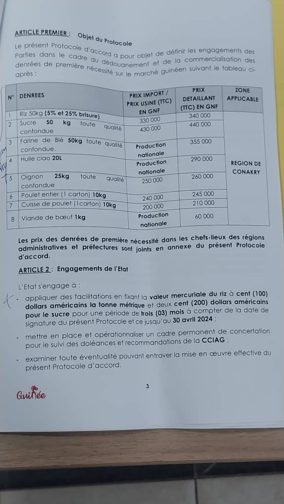 Ce protocole d’accord est venu donc fixer le prix des denrées de première nécessité dans la capitale Conakry mais aussi les régions et préfectures comme le sucre, le riz, la farine, l’oignon mais aussi l’huile.