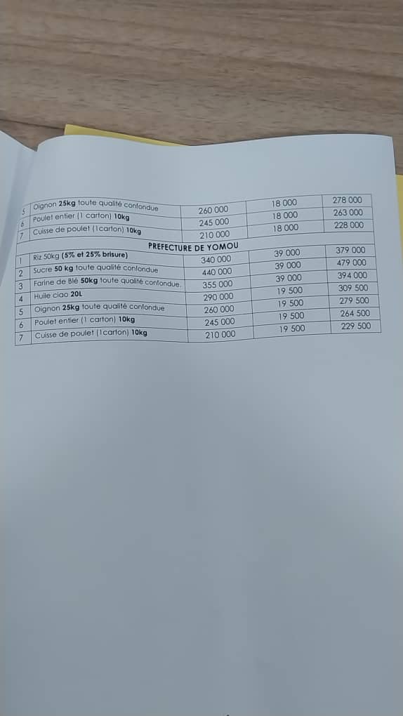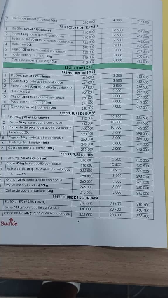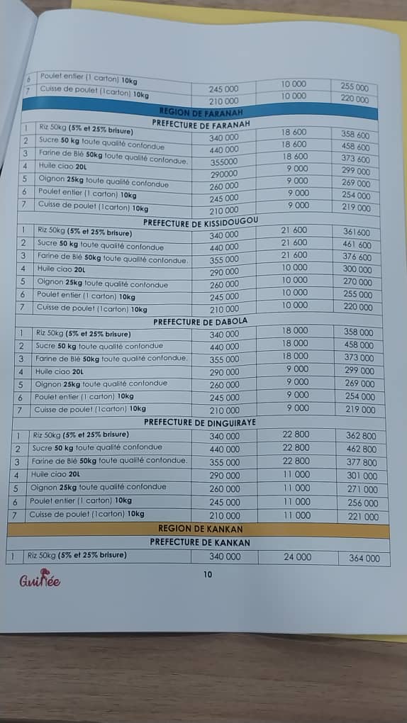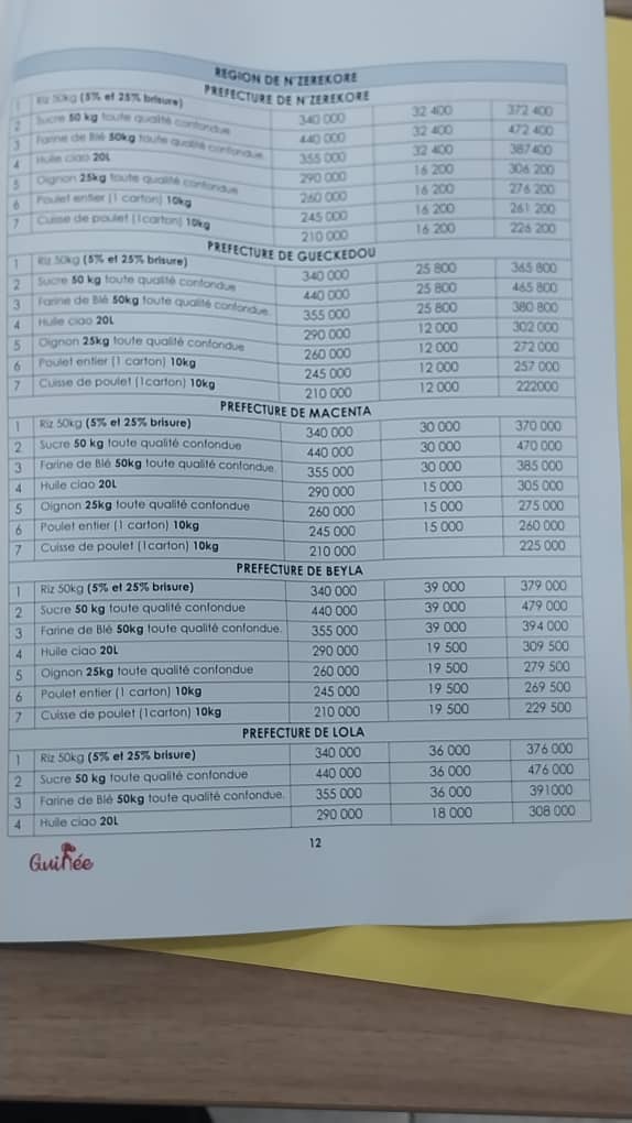 Ci-dessous les prix de ces denrées à grandes consommations par région et préfecture.