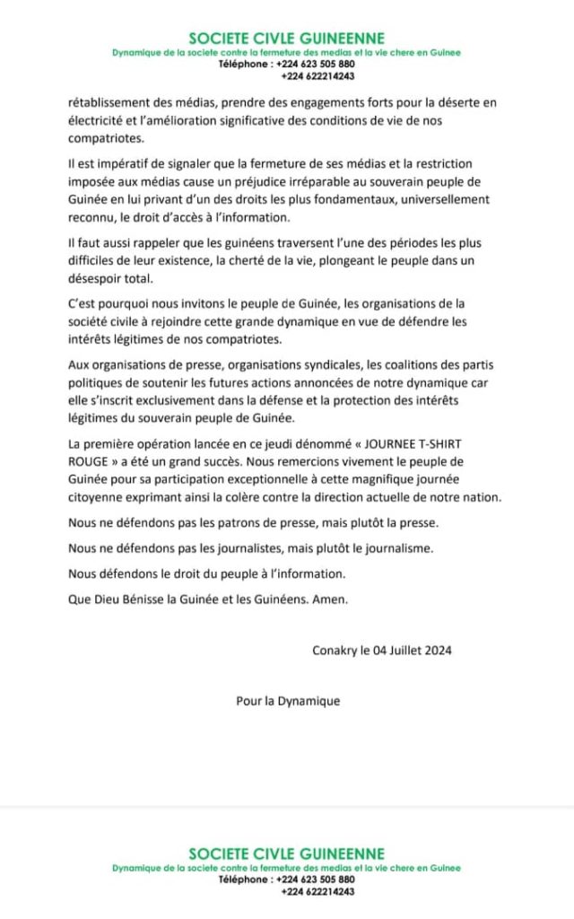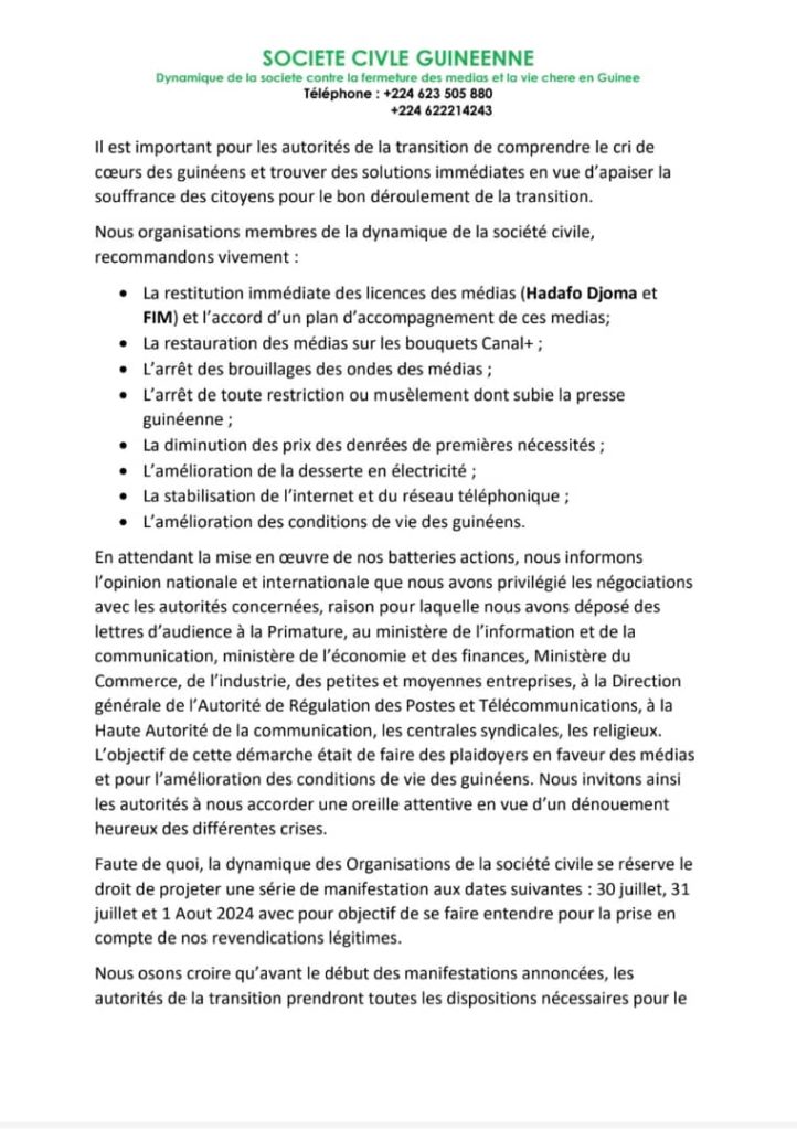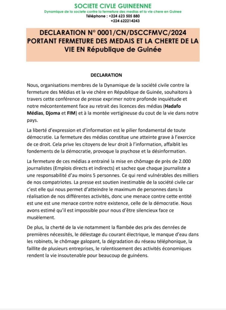 Face à la suspension des licences des médias Hadafo, Djoma et FIM, et à la flambée des prix des produits de première nécessité, les organisations de la société civile guinéenne lancent un appel pressant pour la restauration de la liberté de la presse et l’amélioration des conditions de vie.