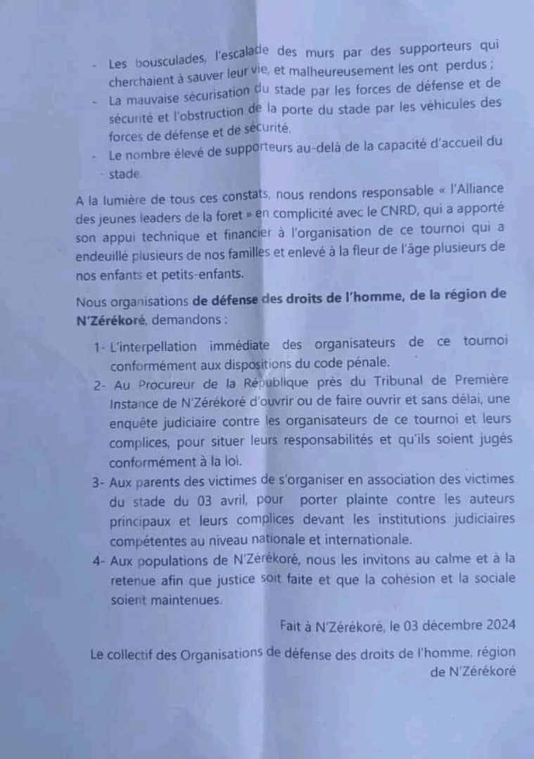 Drame au stade du 03 avril à N’Zérékoré : Les organisations de défense des droits de l’homme exigent la justice