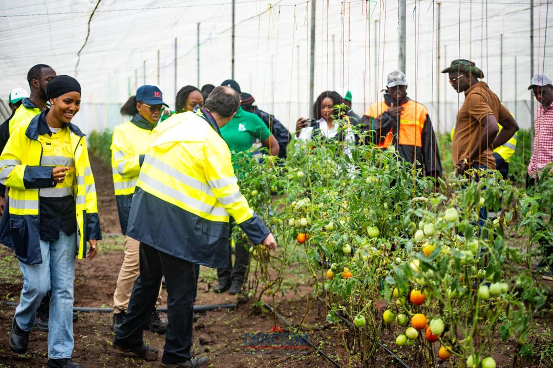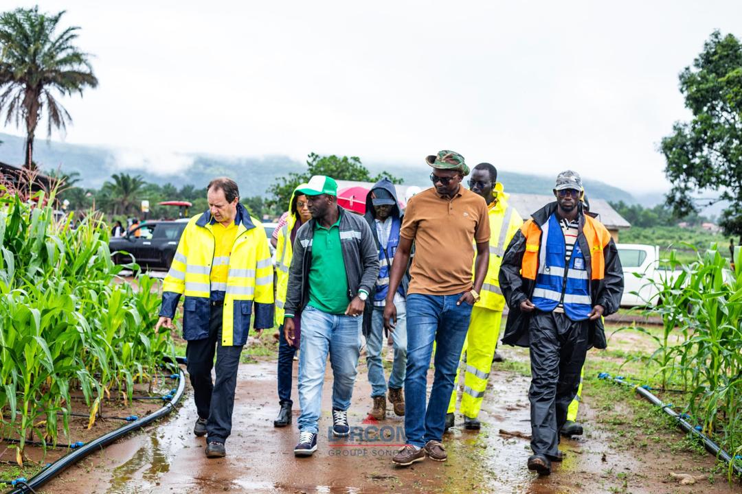 La délégation s’est ensuite rendue à Kouria, sur le site de la ferme agricole pilote de 52 hectares, dont 10 sont déjà exploités. Cette étape illustre la volonté du Groupe SONOCO de réduire la dépendance aux importations et de produire localement les intrants nécessaires à l’alimentation animale. « Nous voulons créer une véritable boucle de valeur locale, » a précisé M. Diallo.
