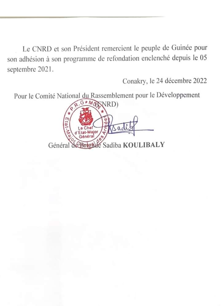 Le président de la transition, colonel Mamadi Doumbouya invité tous les Guinéens à un sursaut patriotique afin dominer nos émotions et poser les bases solides de la refondation et du rayonnement de notre pays.