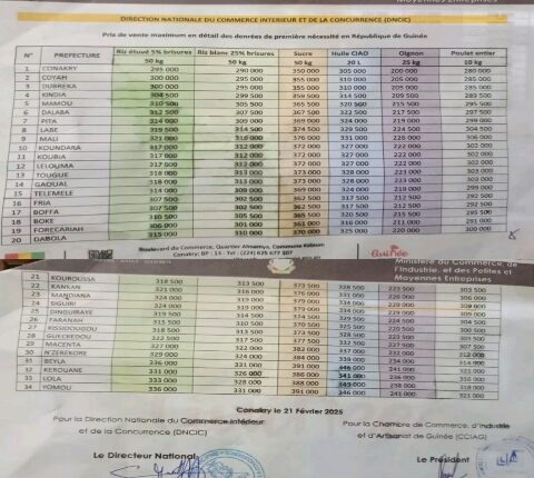 Les prix des denrées concernées ont été revus à la baisse, bien que les détails précis sur chaque produit n’aient pas été communiqués lors de la conférence. La direction nationale du commerce intérieur et de la concurrence veillera à l’application effective de cette mesure.