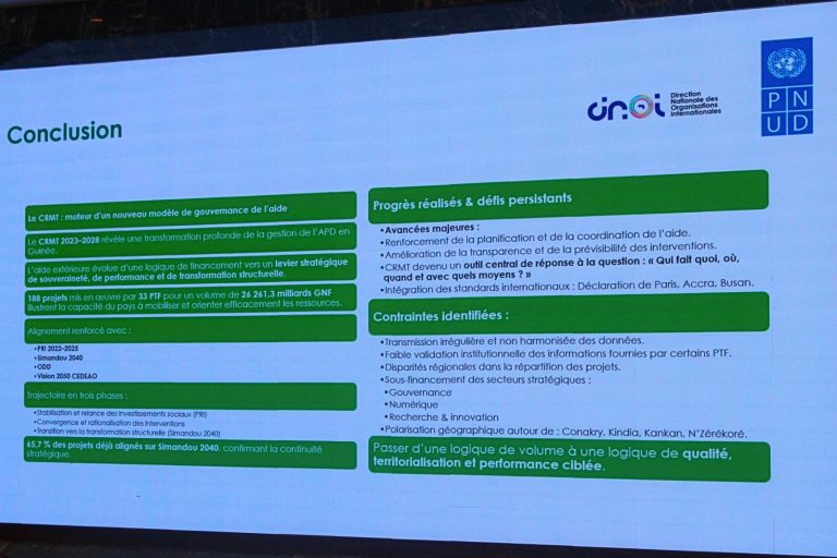 Les premiers résultats sont significatifs : 188 projets actifs recensés, 31 partenaires ayant transmis des données exploitables, plus de 8 489 milliards de francs guinéens déclarés.