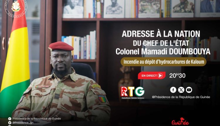 L’information a été publié par la direction de communication et de l’information de la présidence. L’homme fort du 5 septembre s’adressera donc à la nation via la RTG et les canaux digitaux (20h 30) de la présidence sur l’incendie au principal dépôt d’hydrocarbures de Kaloum.