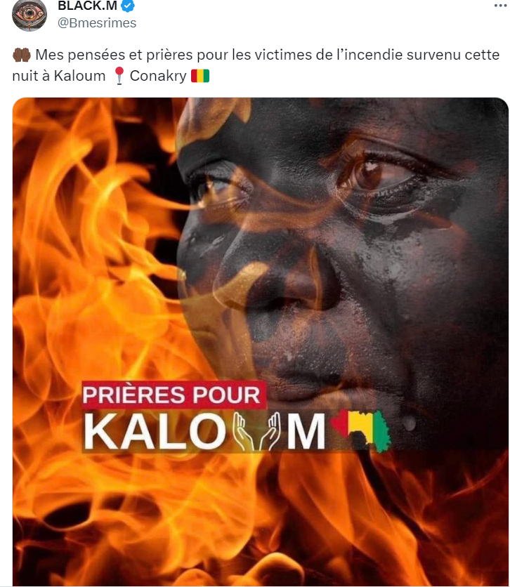 « Mes pensées et prières pour les victimes de l’incendie survenu cette nuit à Kaloum Conakry », a posté Black M.
