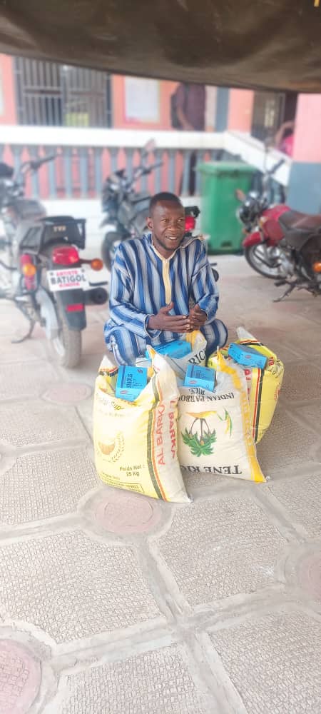 Ce don est composé de 4 sacs de riz de 25 kilos, chacun, et des paquets de sucre. Les bénéficiaires sont Maître Fodé Laye Sylla dit Mazo, metteur en scène de la troupe de Kindia et ancien danseur de Yankadi, le défunt Abdoulaye Camara de l’orchestre Dirou Band, Kabinet Camara premier chanteur, Youssouf Tènè Sylla.