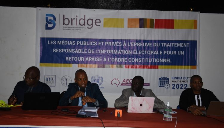 Le programme des nations unies pour le développement (PNUD) Guinée en collaboration avec ses partenaires a initié un atelier de formation pour mieux outiller 24 journalistes des médias publics et privés dans le traitement responsable de l’information électorale. Cette session appelée BRIDGE (Bâtir des Ressources en Démocratie, Gouvernance et Elections) est organisée du 06 au 10 dans la ville des agrumes Kindia sous le thème ‘’ les médias publics et privés à l’épreuve du traitement responsable de l’information électorale pour un retour apaisé à l’ordre constitutionnel’’.