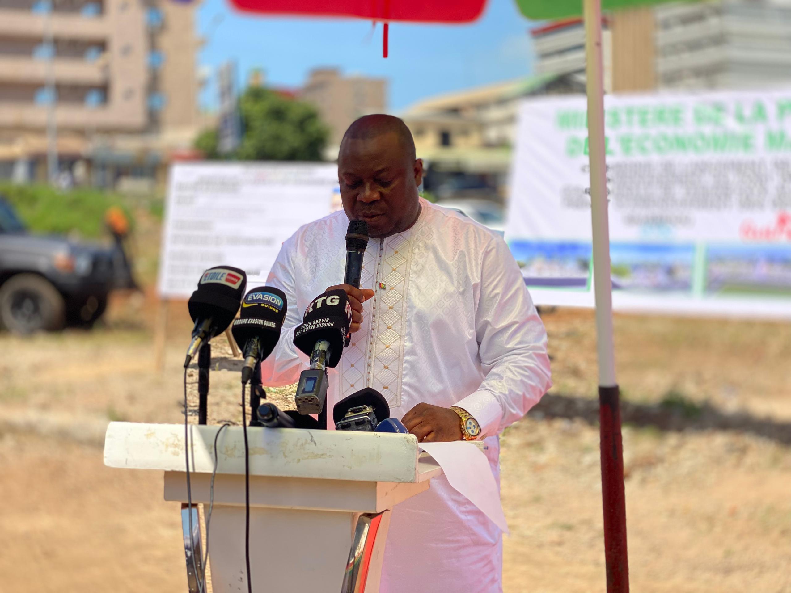La cérémonie de pose de la première pierre s’est tenue en présence du Premier ministre, Amadou Oury Bah, du ministre de la Pêche et de l’Économie maritime, Fassou Théa, ainsi que de plusieurs membres du gouvernement et acteurs du secteur halieutique.