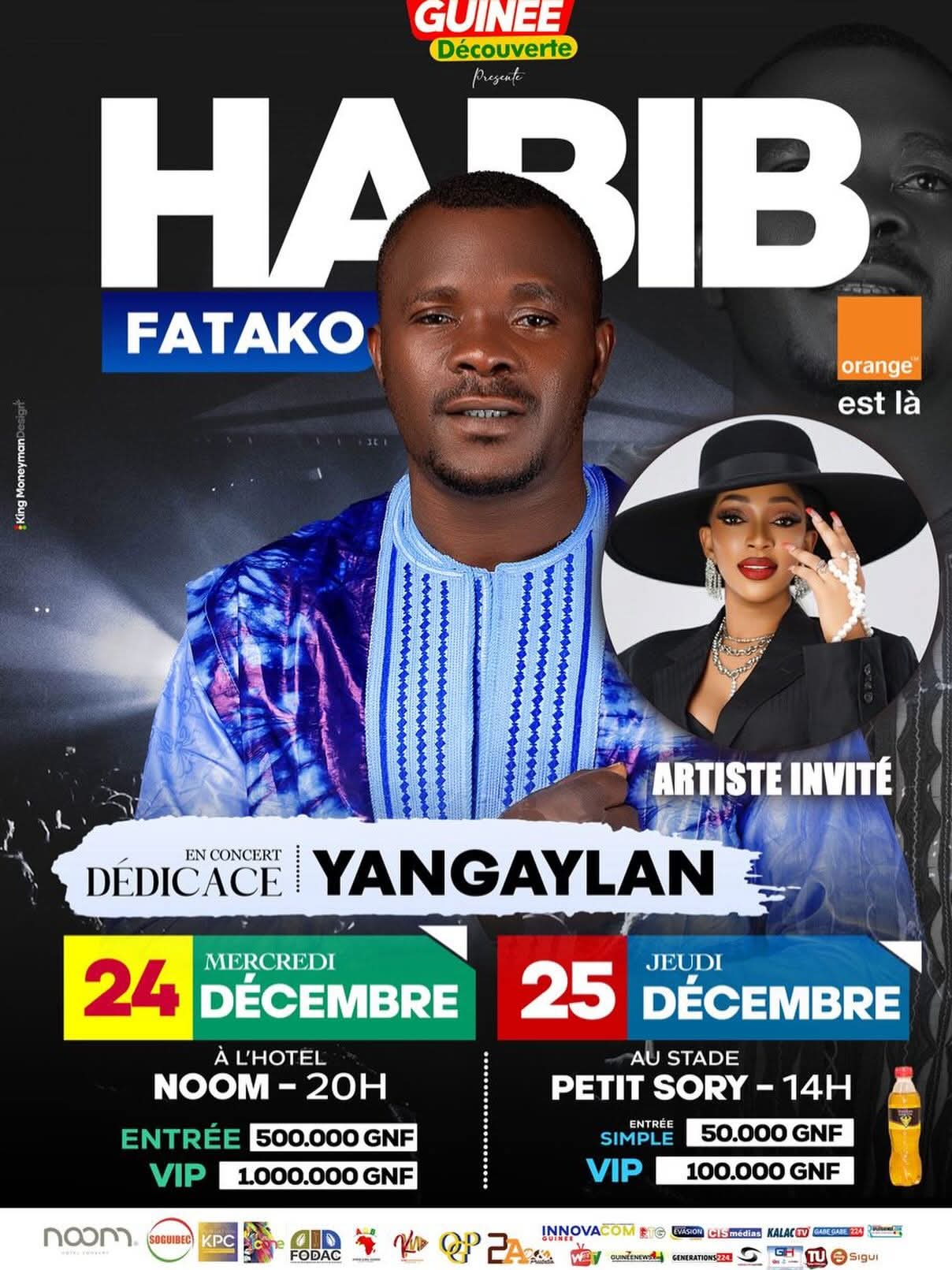 Initialement prévu aujourd’hui, le concert grand public de l’artiste Habib Fatako est finalement reporté à demain, vendredi 26 décembre. L’événement se tiendra toujours au stade Petit Sory, où les fans sont attendus pour un moment musical exceptionnel.