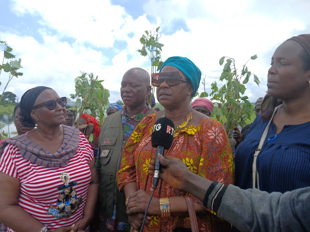 « Depuis près d’un mois, nous sommes sur ce site pour la mise en œuvre de cette convention que le Réseau AWLN-Guinée a signé avec le Ministère de l’Environnement et du Développement Durable. Nous avons fait toutes les étapes. Nous avons rencontré les autorités locales de Dubréka, de la sous-préfecture de Tondon et les communautés locales pour les associer à la réalisation cette convention qui s’inscrit dans le cadre de la campagne nationale de reboisement 2024. C’est dans ce cadre que 15 hectares, nous ont été attribués sur les berges du fleuve Konkouré. Dans la mise en œuvre de cette convention, nous avons associé les ONG locales. Nous avons plus de 100 personnes dont 60 femmes qui nous ont accompagné. Aujourd’hui, sur les 15 hectares, nous avons planté 16 665 arbres et mis en place une clôture de plus de 2 000 plantes et un comité de surveillance composé de six (6) personnes. Cela pour restaurer le couvert végétal de ce site stratégique situé sur les berges du fleuve Konkouré. Une initiative qui vient en appui au programme de transition écologique des femmes de Guinée portée par les Réseaux AWLN-Guinée et le REFAMP Guinée » a expliqué Hadjambalou Fofana, Coordinatrice Générale du Programme de Transition Ecologique des Femmes de Guinée initié par le Réseau des Femmes Africaines Leaders de Guinée et le Réseau des Africaines Ministres et Parlementaires de Guinée.