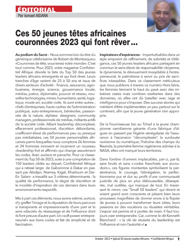 Magazine confidentiel Afrique : Seydou Nourou Guissé parmi les 50 jeunes leaders du continent qui font rêver !