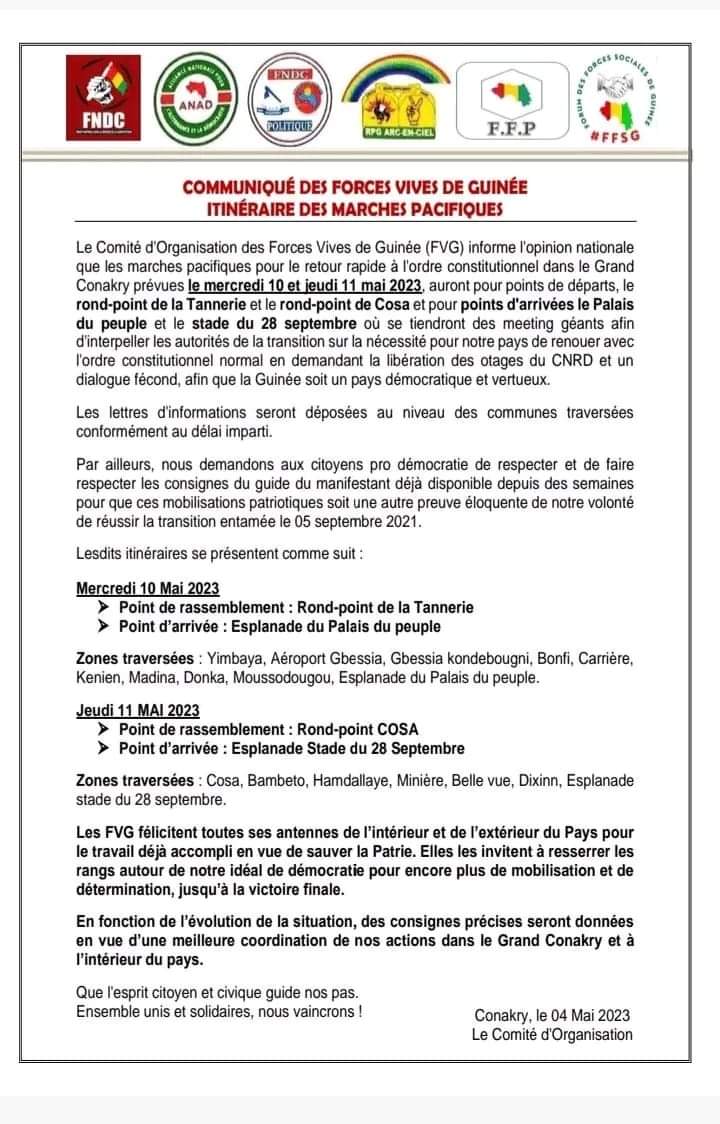 Le jeudi 11 mai, les manifestants vont se donner rendez-vous au carrefour Cosa pour le début de la manifestation. Elle prendre fin à l’esplanade du stade du 28 septembre sur la route le prince.