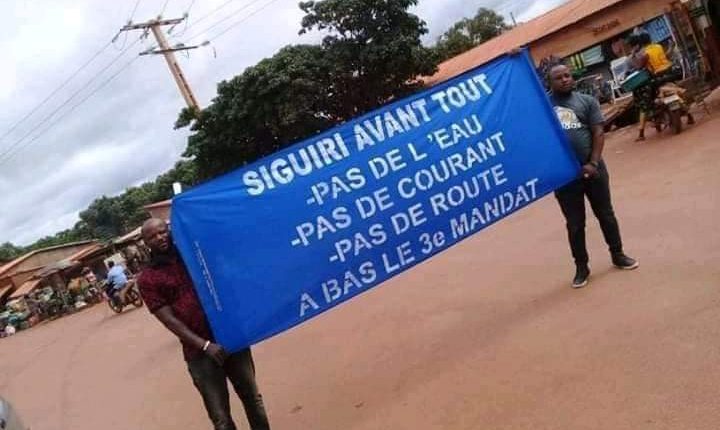 Sur les banderoles qui seront probablement brandies ce mardi on peut lire: » Siguiri avant tout, pas de l’eau, pas de courant, pas de route, À bas le 3è mandat ».