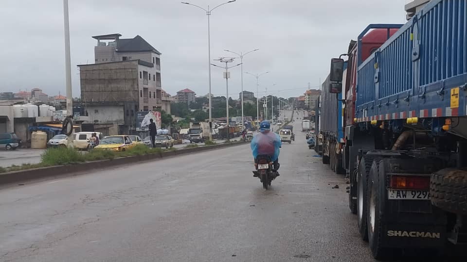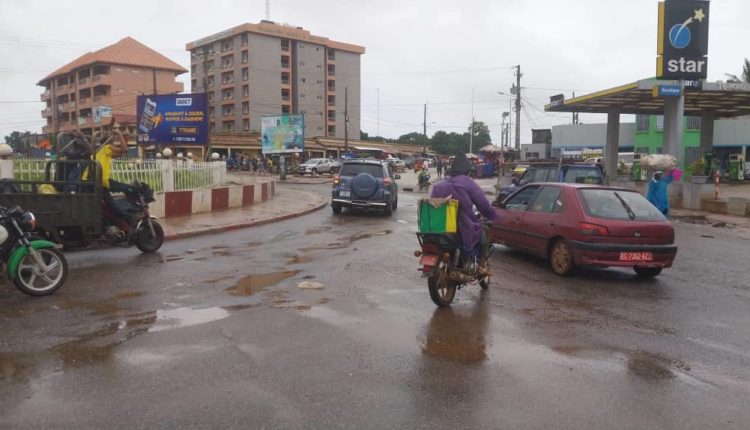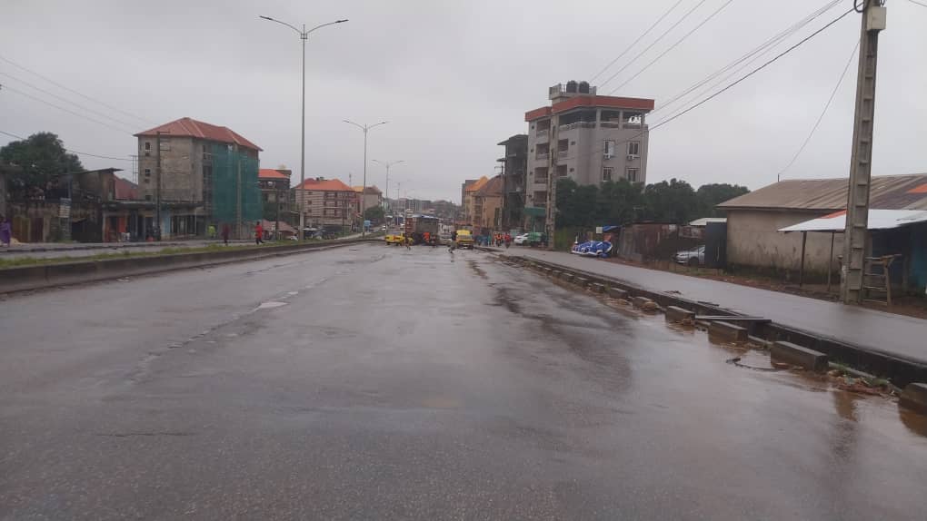 Du rond-point de Kagbelen dans la commune du même nom jusqu’à Cosa, en passant la cimenterie et la transversale numéro 7 et 8 c’est le calme qui règne. La circulation est moins dense, quelques stations de service opérationnelles, sur le long du trajet quelques pickups de la gendarmerie et de la police étaient visibles.