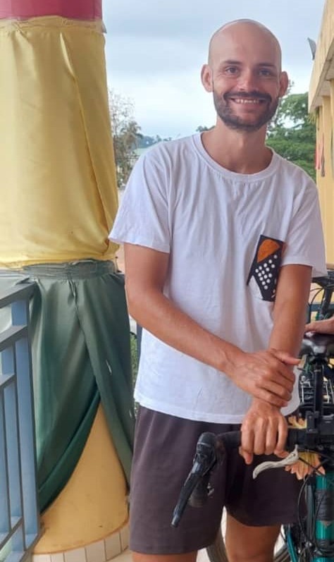 « J’ai fait plusieurs voyages à vélo, il y a cinq ans je suis venu jusqu’au Maroc et je m’étais arrêté aux portes du désert, et depuis ce jour-là, j’avais très envie de revenir en Afrique pour voir ce qu’il y avait après la porte du désert, et c’est ce que j’ai fait cette année. Et j’ai embarqué une amie qui ne connaissait pas du tout le voyage à vélo, donc c’était très intéressant de la voir évoluer dans cette aventure, avec tout ce que ça comporte car ça demande beaucoup d’effort. On est parti comme ça, et chaque jour on a avancé, pour voir jusqu’où on allait pouvoir aller. Elle, elle s’est arrêtée au Sénégal. C’était déjà incroyable de pouvoir aller au Sénégal à vélo. Et ensuite j’ai rencontré Julien qui m’a proposé de continuer dans l’Afrique de l’ouest. C’est un plaisir de pouvoir découvrir la Guinée et nous sommes en train de traverser la Guinée, c’est une magnifique et énorme surprise d’être dans ce pays. Pour moi l’objectif, comme tous mes voyages à vélo, c’est de découvrir la population, de me rendre compte comment les autres agents vivent ailleurs dans le monde », explique Sylvain Guignot.