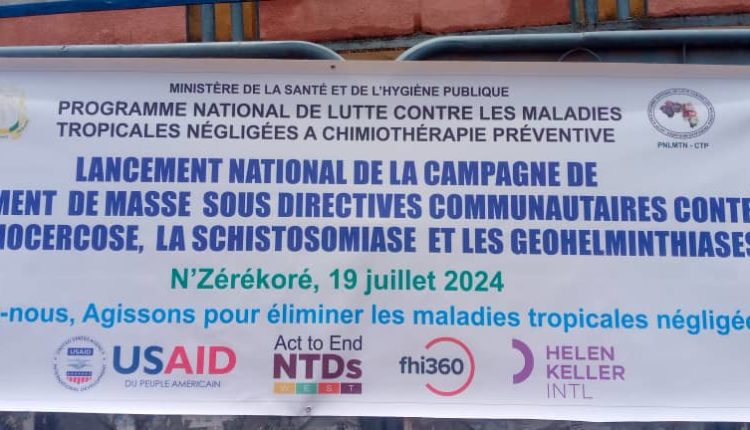 Le ministre de la Santé et de l’Hygiène Publique a lancé ce vendredi 19 juillet 2024, une campagne de distribution de médicaments visant à lutter contre les maladies tropicales négligées, notamment l’onchocercose, la schistosomiase et les géohelminthiases. Cette initiative, dont l’objectif est d’éradiquer ces maladies, a eu lieu à la Maison des Jeunes de N’Zérékoré, en présence de professionnels de la santé, de soignants, d’autorités locales et administratives, ainsi que de partenaires techniques et financiers.