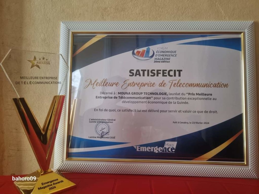 Sans surprise aucune le groupe MouNa technologie a été sacré meilleure société de télécommunication en Guinée lors de la deuxième édition de l’Émergence magazine Awards à Conakry.