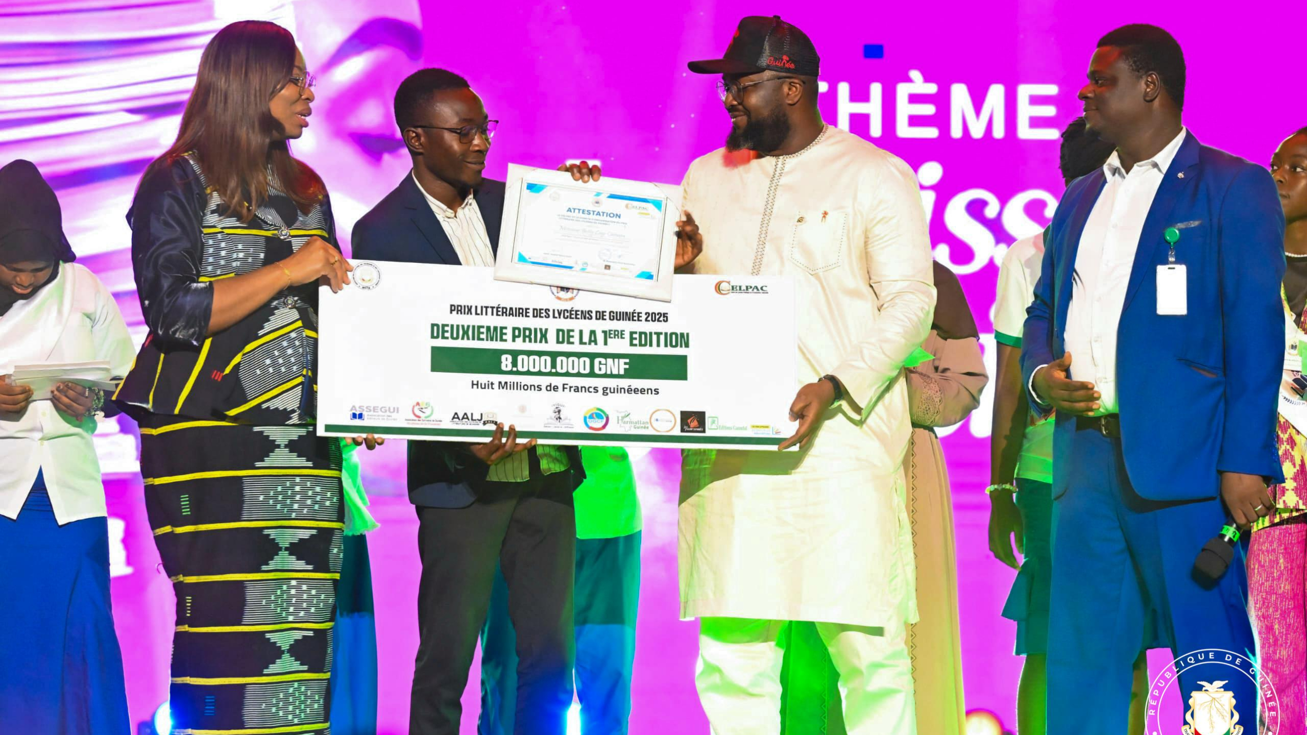 Moment fort de cette journée : le Ministre Djiba DIAKITÉ a procédé à la remise du Prix Littéraire des Lycéens de Guinée, une distinction qui récompense la passion et le talent des jeunes lecteurs du pays.