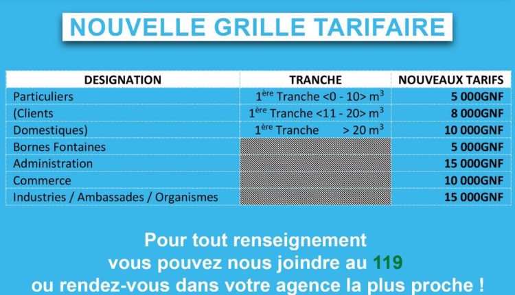 C’est pourquoi, la Société des Eaux de Guinée (SEG) a, pour son équilibre financier avec les immenses défis de l’heure, décidé de procéder à une nouvelle tarification.