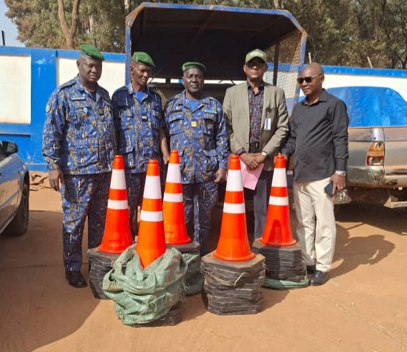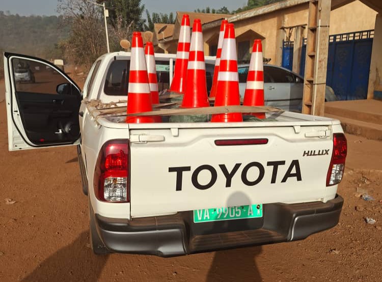 « Sous instruction du gouverneur de la région de Mamou et au nom du ministre Ousmane Gaoual Diallo, il s’agit d’apporter une contribution concrète à la sécurité routière et au bien-être des populations. Ces cônes et gilets permettront de mieux signaler les zones à risque et de protéger les forces de l’ordre. »