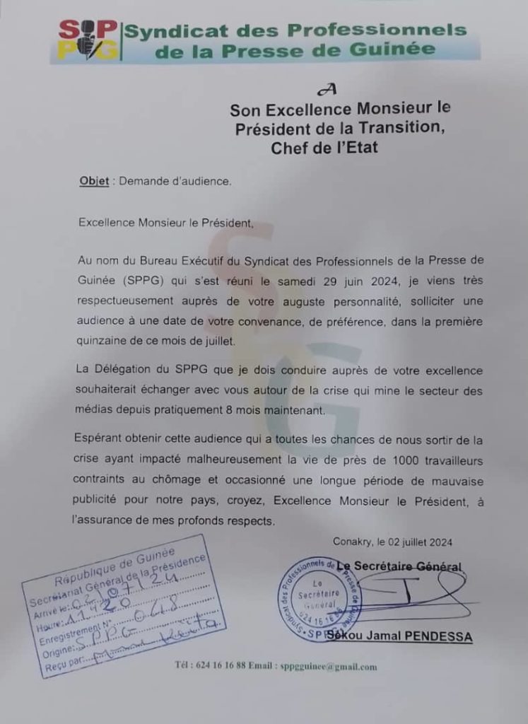 Le SPPG espère que cette rencontre pourra offrir des solutions pour sortir de cette situation difficile. Ci-dessous la demande d’audience :