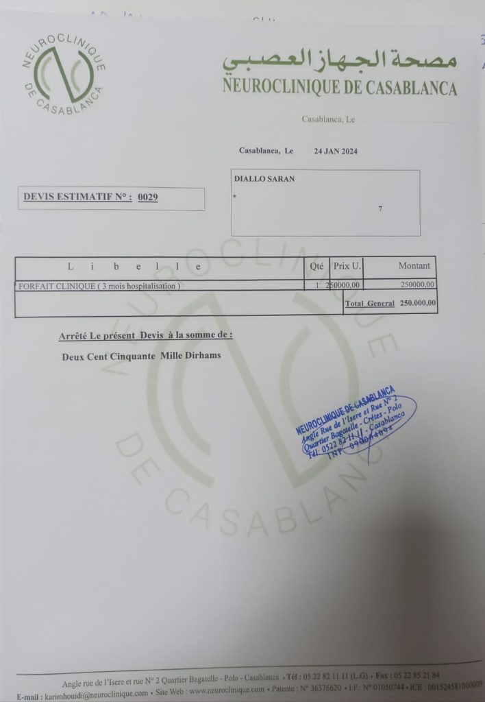 À rappeler que le montant nécessaire pour l’évacuation au Maroc de Saran est de 25 000 euros.