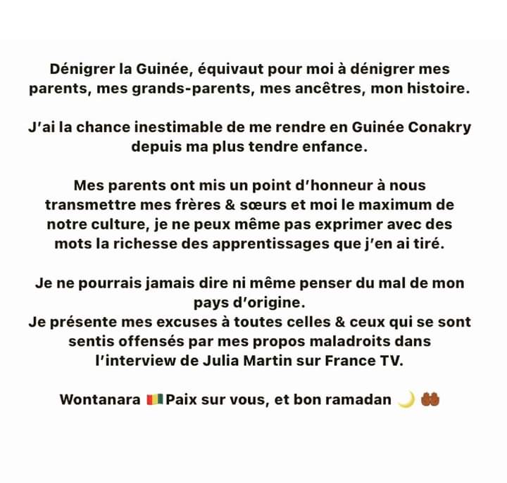 Dans une interview avec Julia Martin de France TV, le rappeur Franco-Guinéen s’est attiré la colère de plusieurs de ses compatriotes Guinéens quand il a évoqué son pays d’origine notamment sa pauvreté et le fait qu’il ne soit pas dans la zone CFA. Moins de 24h après de vives critiques qu’il a essuyées sur les réseaux sociaux, Black M demande pardon aux Guinéens pour cet écart de langage.