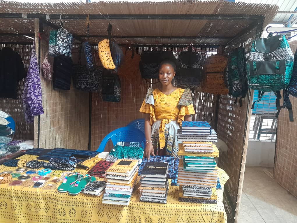 Un peu loin du stand de Hadjiratou Bah se situe celui de Nantenin Keita, gérante de l’entreprise Nankey Production. Diplômée en licence de Sociologie et actuellement étudiante en Master 2 en management et stratégie d’entreprise, elle a aujourd’hui trois employés dans son entreprise qui évolue dans la confession des accessoires de mode en textile guinéen et en perles. Dans un stand où on peut contempler des sacs à main et à dos, l’habillage des bloc-notes, des bracelets et des chaussures, elle nous explique avoir plus de quatre ans d’expériences dans son monde.