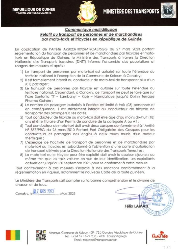 En ce qui concerne les tricycles, ils circulent désormais sur la corniche de Sonfonia T7 à Dixinn terrasse en passant par Lanbanyi-Nongo-Kaporo.