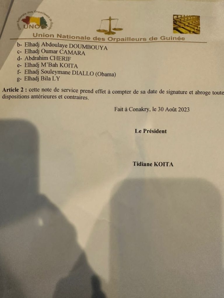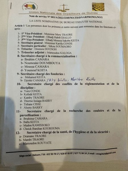 Président de l’Union Nationale des Orpailleurs de Guinée (UNOG).
