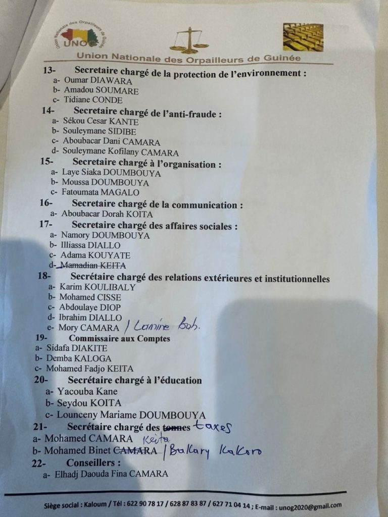 Secrétariat chargé à l’organisation : Elhadj Siaka Doumbouya, Moussa Doumbouya, Fatoumata Magalo
