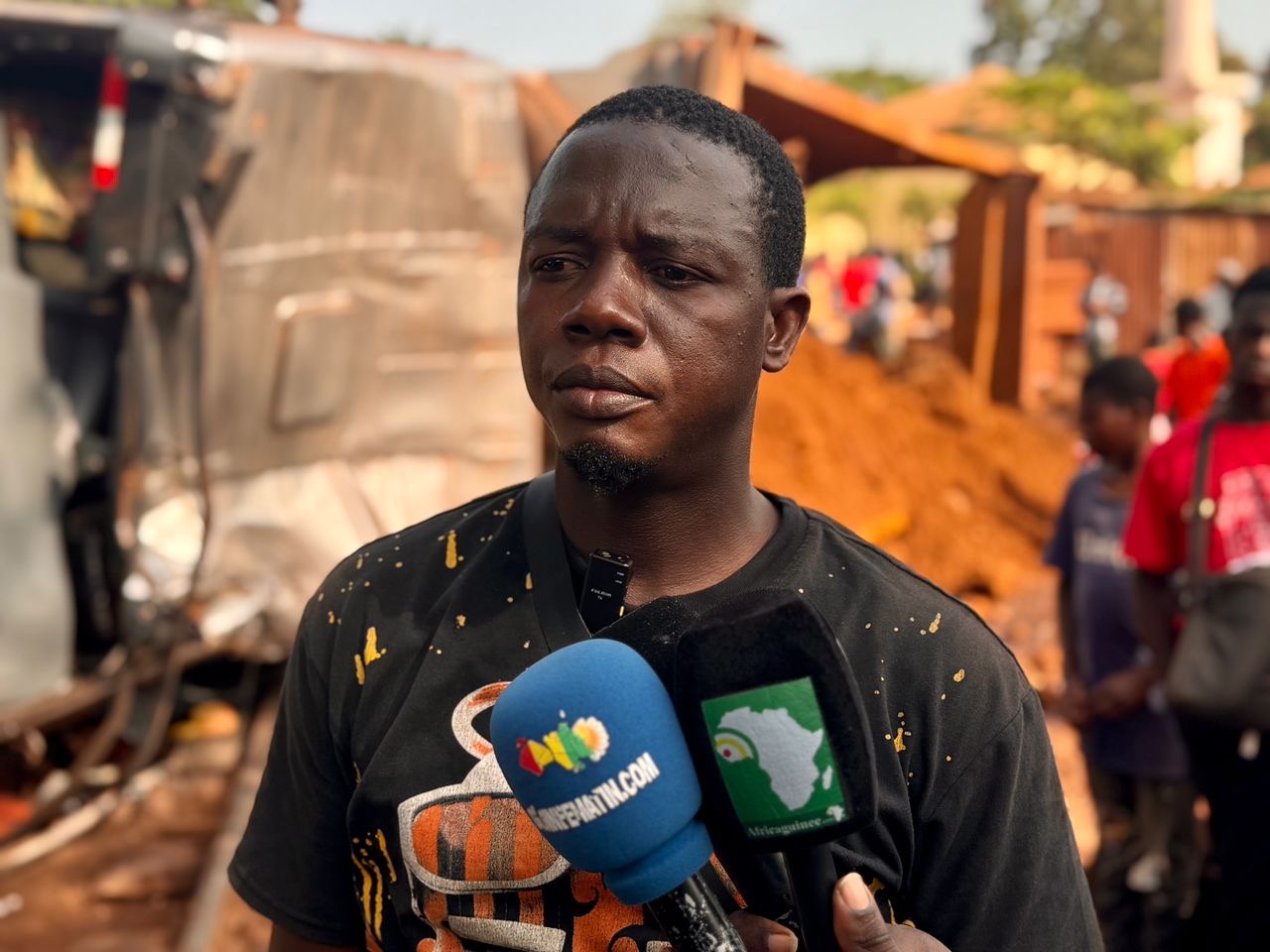 Abdoulaye Diallo, le conducteur du poids lourd, témoigne avec émotion : « Je traversais les rails quand le train est arrivé brusquement. Il n’y avait aucun signal, ni barrière, ni agent de sécurité. Le choc a été violent. Mon apprenti et moi avons eu la vie sauve de justesse ». Transportant de la terre rouge, le camion a été percuté de plein fouet, provoquant le déraillement partiel de la locomotive et la destruction de plusieurs baraques de fortune implantées le long de la voie.
