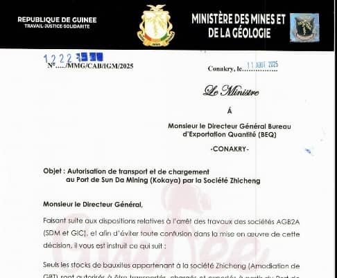 Cette reprise soulève une série de questions : pourquoi autoriser une société étrangère à exporter alors que les activités sont gelées sur les autres sites miniers, notamment à Boffa, Fria et Télimélé ? Quel est lien entre Zincheng et SD Mining ? Pourquoi Zincheng bénéficie-t-elle d’un accès privilégié à un port lié à un permis contesté ? Et surtout, pourquoi AGB2A-GIC, entreprise guinéenne en règle, reste-t-elle bloquée ?