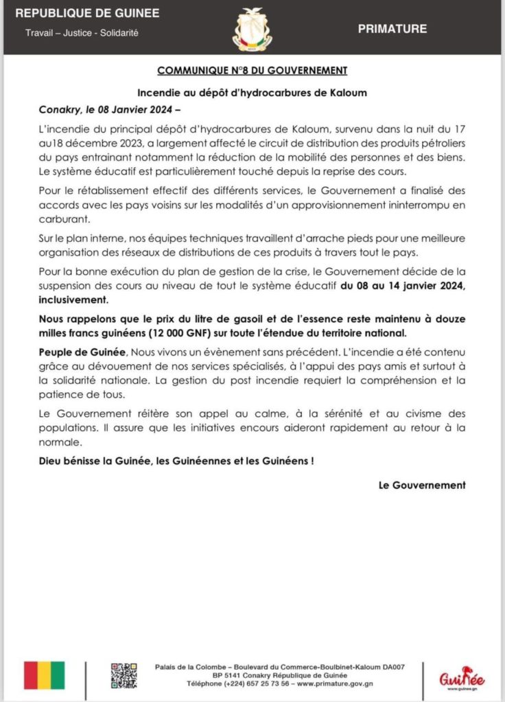 Début d’année très dur pour les Guinéens dans leur majorité. L’incendie du principal dépôt d’hydrocarbures de Kaloum survenu dans la nuit du 17 au 18 décembre 2023 continue de faire mal aux Guinéens.