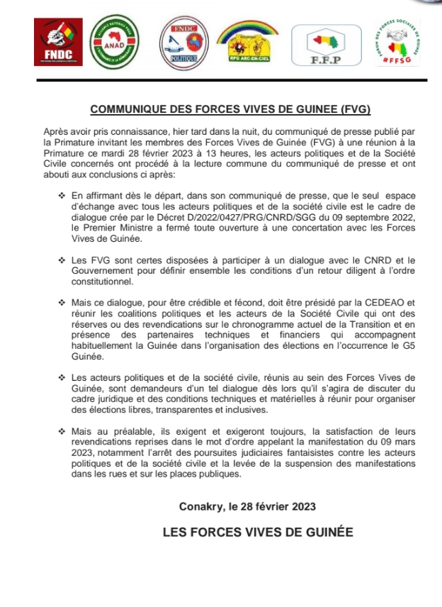 Urgent: les forces vives de Guinée répondent au premier ministre Dr Bernard Goumou (communiqué)