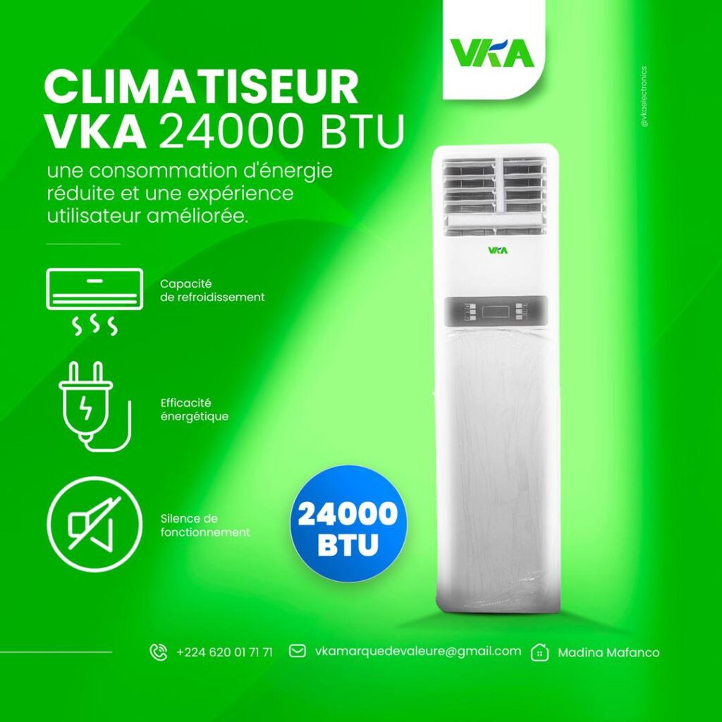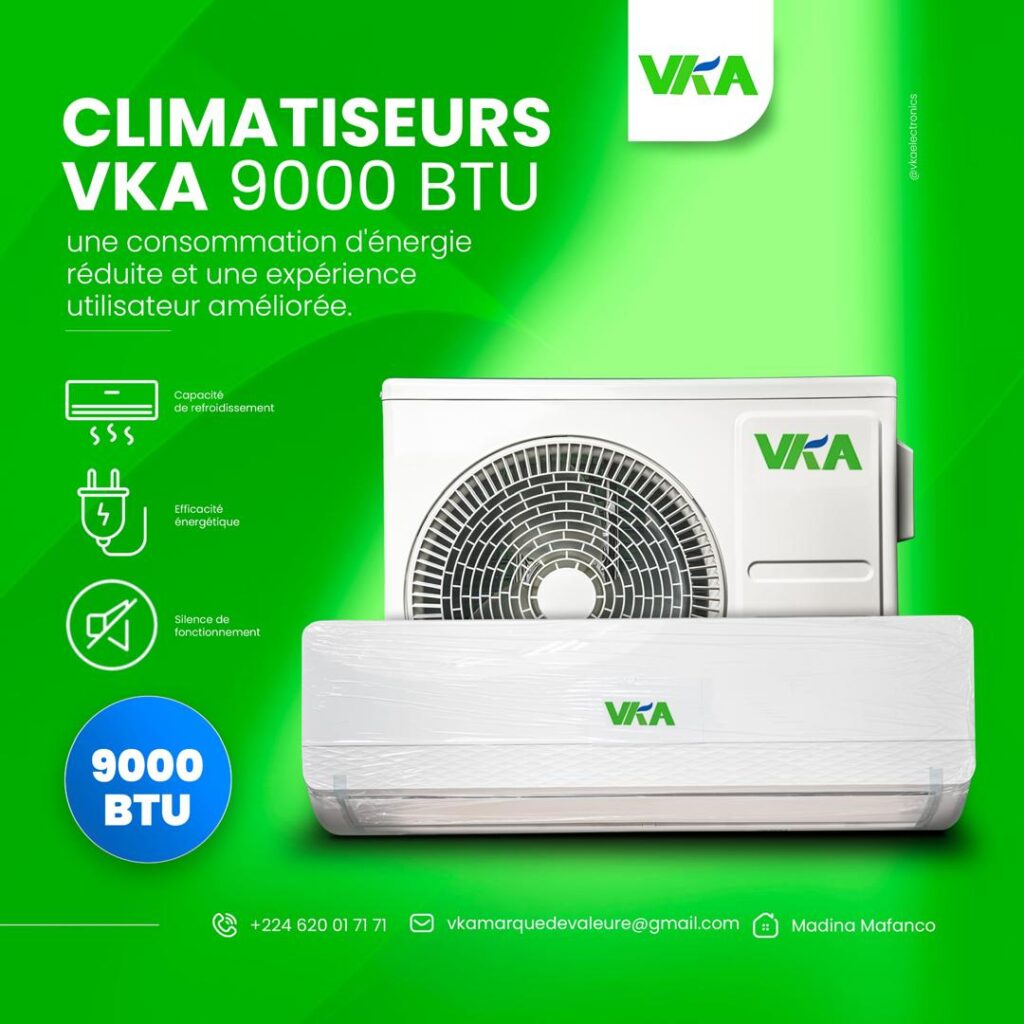 Depuis son arrivée en 2022, VKA a su s’imposer comme une référence incontournable sur le marché guinéen. Née de l’ambition locale et d’une compréhension approfondie des besoins des consommateurs guinéens, VKA propose des solutions innovantes qui répondent aux défis spécifiques rencontrés au quotidien, tels que les coupures de courant et les variations de tension. Grâce à son engagement envers l’économie d’énergie et la fiabilité, la marque est devenue un acteur clé dans l’amélioration du confort domestique.